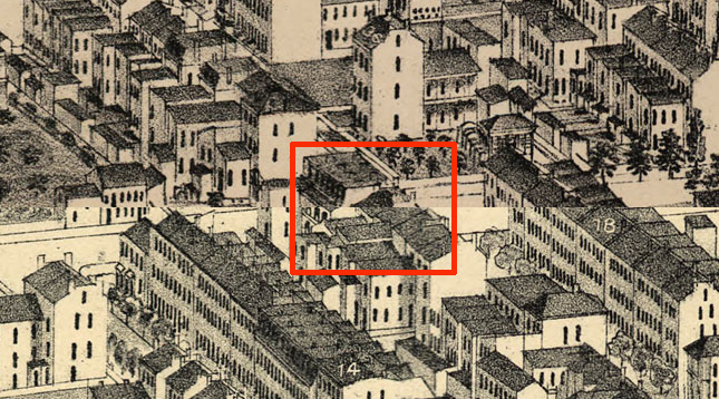 One of the houses across the street from 18 would have been 2652 Olive. This map was created in 1875 while the Minors were living there.