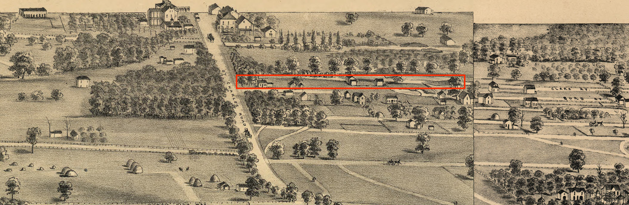 The exact address of Minoria, the Minor’s 10-acre country estate in St. Louis County from 1854-1866, is not listed in any records. However, by using a combination of maps and surveys, we can narrow it down two plots that appear to cover the same land: 5753 Dr. Martin Luther King Drive and 5750 Theodosia (both are now empty lots that back up to one another). The full 10 acres extends beyond this to the northwest.